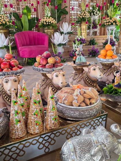 Bangalore is home, and honestly, I just love how our old-school ceremonies look when done right. It’s not just arranging stuff on a plate, ya? It’s about making the whole setup sing - from shiny silver platters to those Lakshmi doll centerpieces. I get a kick out of seeing fruits, flowers, and sweets all lined up, looking perfect. Your big day should feel grand, not just another event.