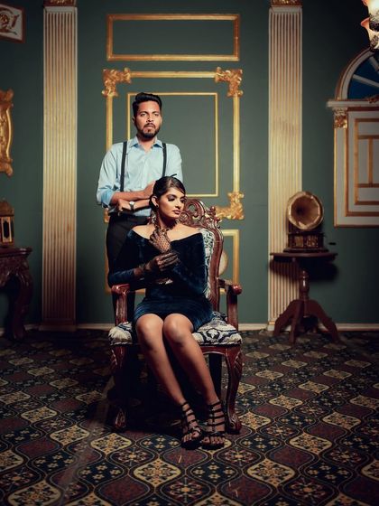 Step into another era with a stylized, vintage-themed photoshoot. I create a complete atmosphere with classic attire and opulent settings to capture a sense of timeless, cinematic romance in every frame.