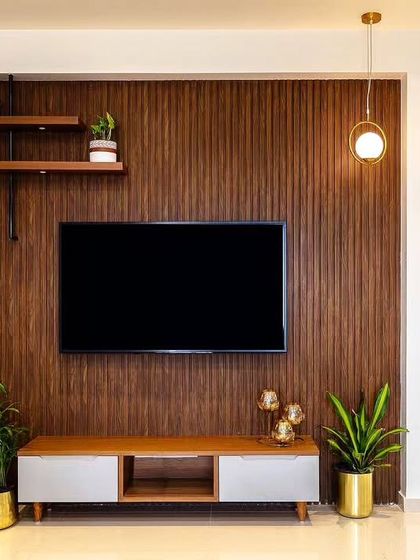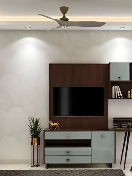 - Modular entertainment units - Floating TV consoles or full-wall systems, sometimes with fluted wood or marble textures. If you want a study desk in the TV unit, that’s doable too.