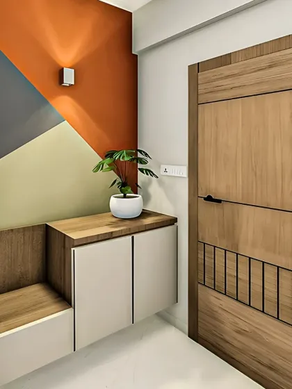 - Partition: CNC or slat-wall divider (up to 3ft wide) separating foyer from living area.