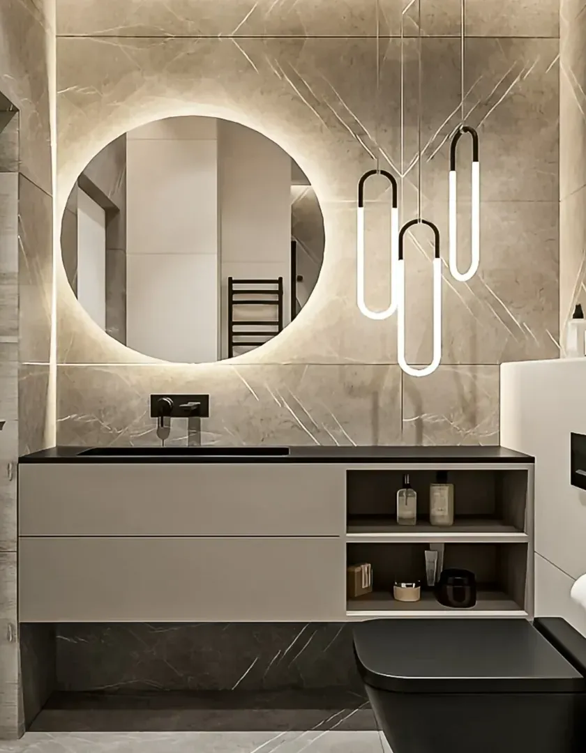 We can turn any bathroom into a relaxing, spa-like retreat. Our designs focus on creating a serene and luxurious atmosphere using high-quality materials, smart storage solutions, and beautiful lighting, whether you have a large master bath or a compact powder room.