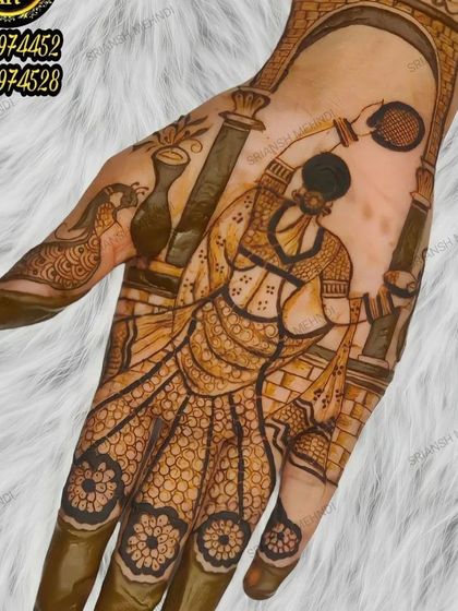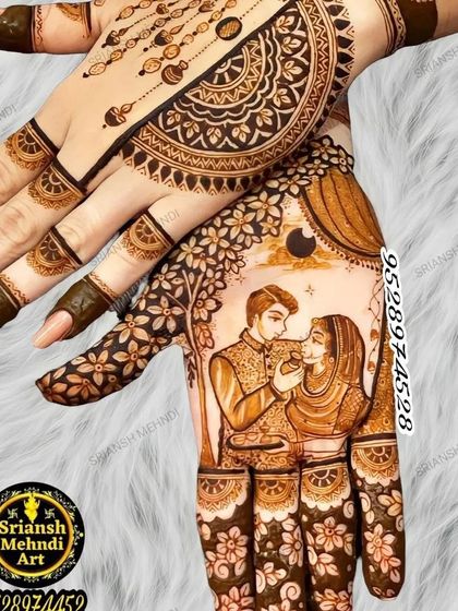Brides seeking detailed, personalized mehndi designs who value quality and are willing to invest time for elaborate artwork. Particularly suitable for those wanting traditional elements with modern interpretations or NRI brides preferring portrait-style designs.