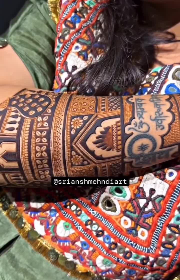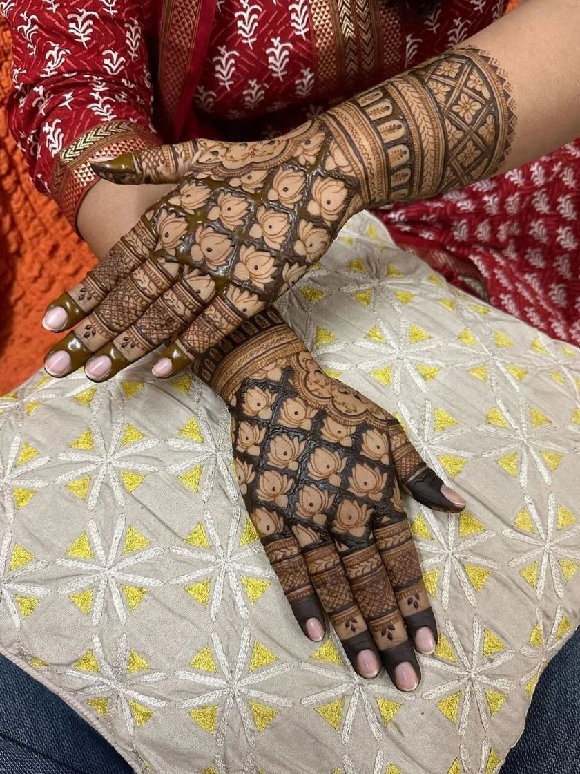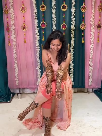 I provide full bridal coverage, with detailed designs extending from fingertips to elbows and across your feet. This ensures a cohesive and stunning look for your wedding day, using only 100% organic paste for a rich, dark stain.