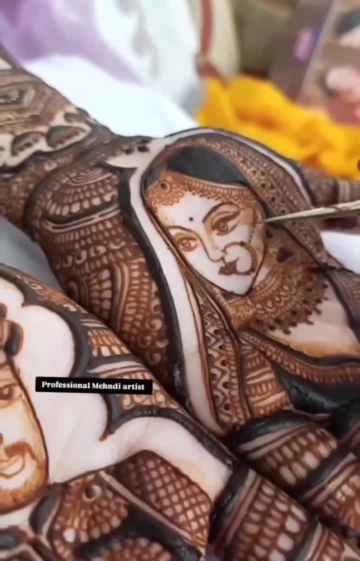 For brides who want to incorporate their faith, I create detailed portraits of deities like Radha-Krishna and Shiva. I can also include sacred symbols and mantras, adding a spiritual dimension to your bridal henna.