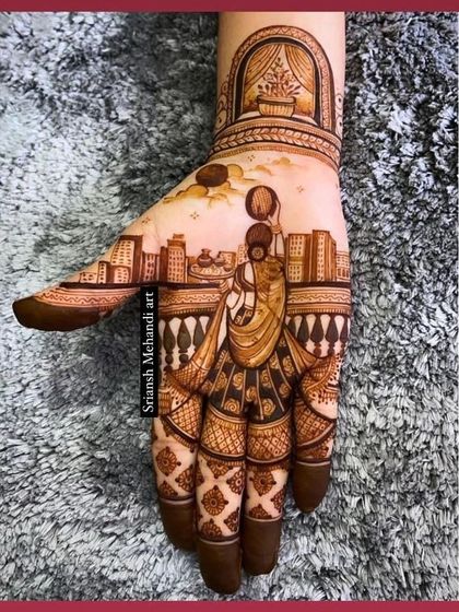 Celebrate special occasions like Karwachauth with unique and beautiful mehndi. I create custom designs that can include romantic couple figures, cityscapes, or traditional symbols to make your festival memorable.