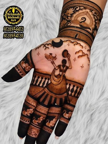 I work for all kinds of celebrations, not just weddings. Festivals like Karwa Chauth, Teej, Diwali, Eid, and even family events - each design is different, just like the occasion. I especially enjoy creating Karwa Chauth mehndi designs that show the real emotion of the festival - from the moon, stars, and chhalni, to portraits of couples.