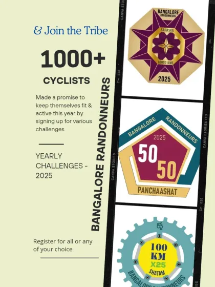 Riding with Bangalore Randonneurs is about feeling part of something bigger. Even if you’re stuck at home or far from group rides, you can still be in the BR family. That’s why we set up these self-paced virtual cycling challenges - so you can ride from anywhere, at any time, in your own style.