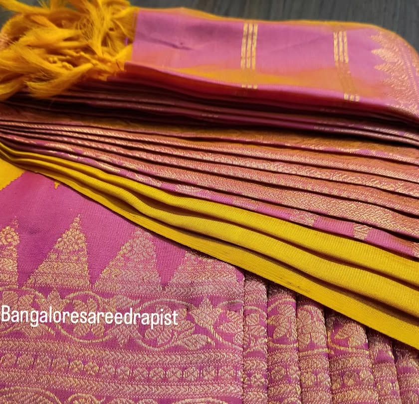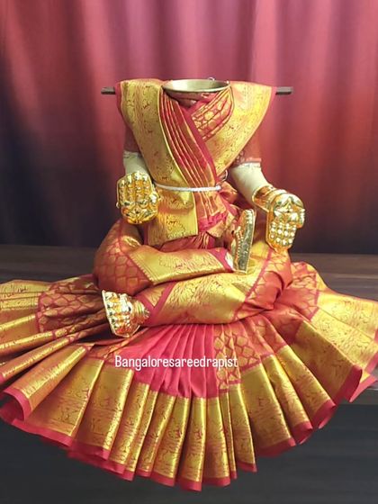 If you're outside Bangalore or prefer a hands-on approach, I offer pre-pleated sarees. I carefully fold and set the pleats on a traditional silk saree, which you can then easily place on your idol for a grand, professional look.