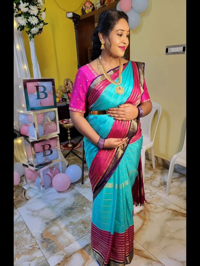 I offer specialized draping for moms-to-be, ensuring maximum comfort without compromising on elegance for occasions like Seemantham or baby showers. The drape is styled to beautifully accommodate your baby bump while feeling secure and light.