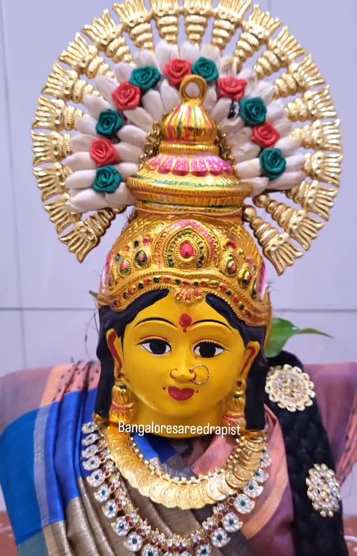 For festivals like Varamahalakshmi Puja, I offer specialized pre-pleating and draping services for goddess idols. I use specific techniques to create a beautiful, traditional, and grand drape that honors the deity.