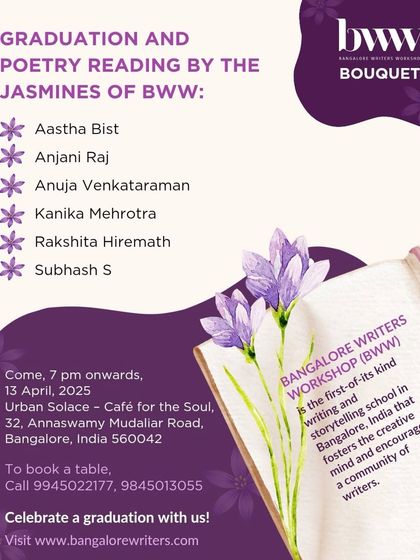 We’re Bangalore Writers Workshop, but honestly, most of us just call it BWW. Started off in coffee shops, now we’re this wild bunch of accidental writers, poets, and storytellers. You walk in a stranger, maybe by mistake, and walk out with a tribe. We’ve had paav bhaji picnics, Cubbon Park graduations, and writing retreats that felt like family. It’s not just about the words – it’s about finding your people, cheering every win, and growing together. That’s why we do this.