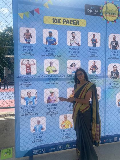 Hey, I’m Shanthi – mom of two, runner (barefoot most days!), and a bit wild at heart. Fitness for me? More like a soul reset. I’ve had my share of tumbles – fractured foot, banged-up leg, saree runs gone sideways. Still, I keep showing up, limping or leaping. My crew, my ‘woman tribe,’ keeps me laughing, matching outfits by accident, cheering loud. We’re not chasing perfect bodies here, just real strength and good company.