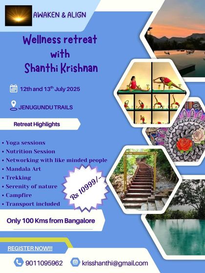 I organise all-in-one wellness retreats near Bengaluru where you can do yoga, trek, try art, eat healthy, and relax in nature without worrying about planning anything.