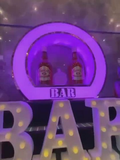Custom Bar Setups - LED bar setup, big BAR signs, custom cocktail menu, themed decor, even your photo on the menu. We match any vibe.