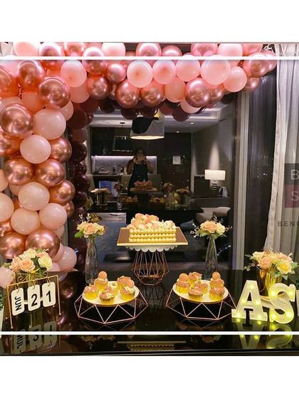 We specialize in creating sophisticated and romantic atmospheres for your milestone celebrations. This includes elegant backdrops, custom balloon arches in color palettes like rose gold, and personalized details that celebrate your story.