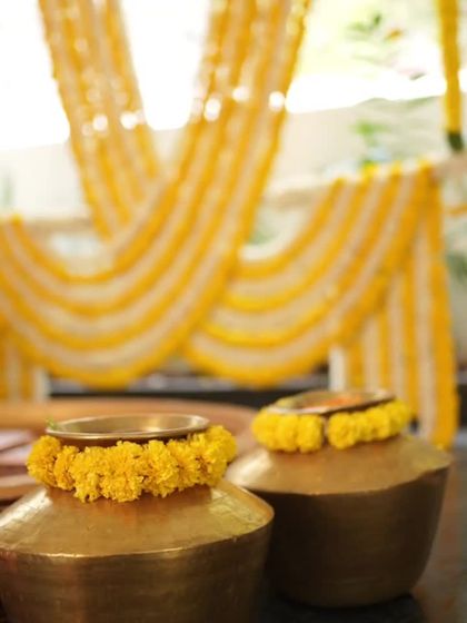 We specialize in creating vibrant and culturally authentic decor for traditional Indian ceremonies. Our expertise includes Haldi and Mehendi ceremonies with traditional elements like marigold garlands, brass pots, and floral arrangements. For South Indian pre-wedding celebrations, we offer Pellikuthru decor featuring banana leaves, floral garlands, and intricately carved wooden furniture.