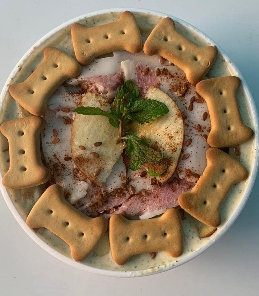 This is my guilt-free, homemade ice cream for your doggo. I make each batch with real fruit and meat, creating a delicious and healthy treat to spoil your best friend. It's a perfect way to cool them down or celebrate a special occasion.