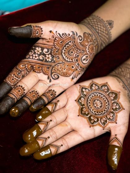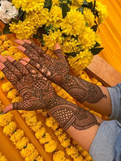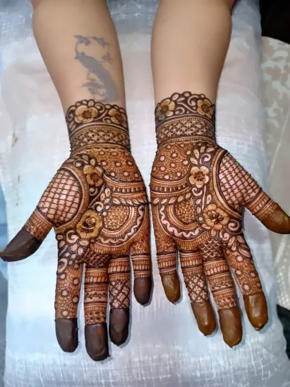 Start with occasion and style. Brides wanting precision can look at Annum Madni; for lush 3D florals, Z4 Studios shines. Minimalist or men’s mehendi? Sonu does clean, modern work. For guest-friendly, elegant designs, Henna by Arsh is dependable. On mytribe.in, filter by style (Arabic, Indo-Arabic, traditional), coverage (half/ full arms, feet), and budget—then we handle the back-and-forth to lock exact scope.