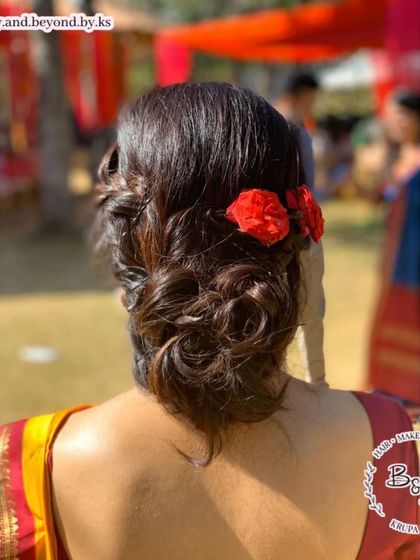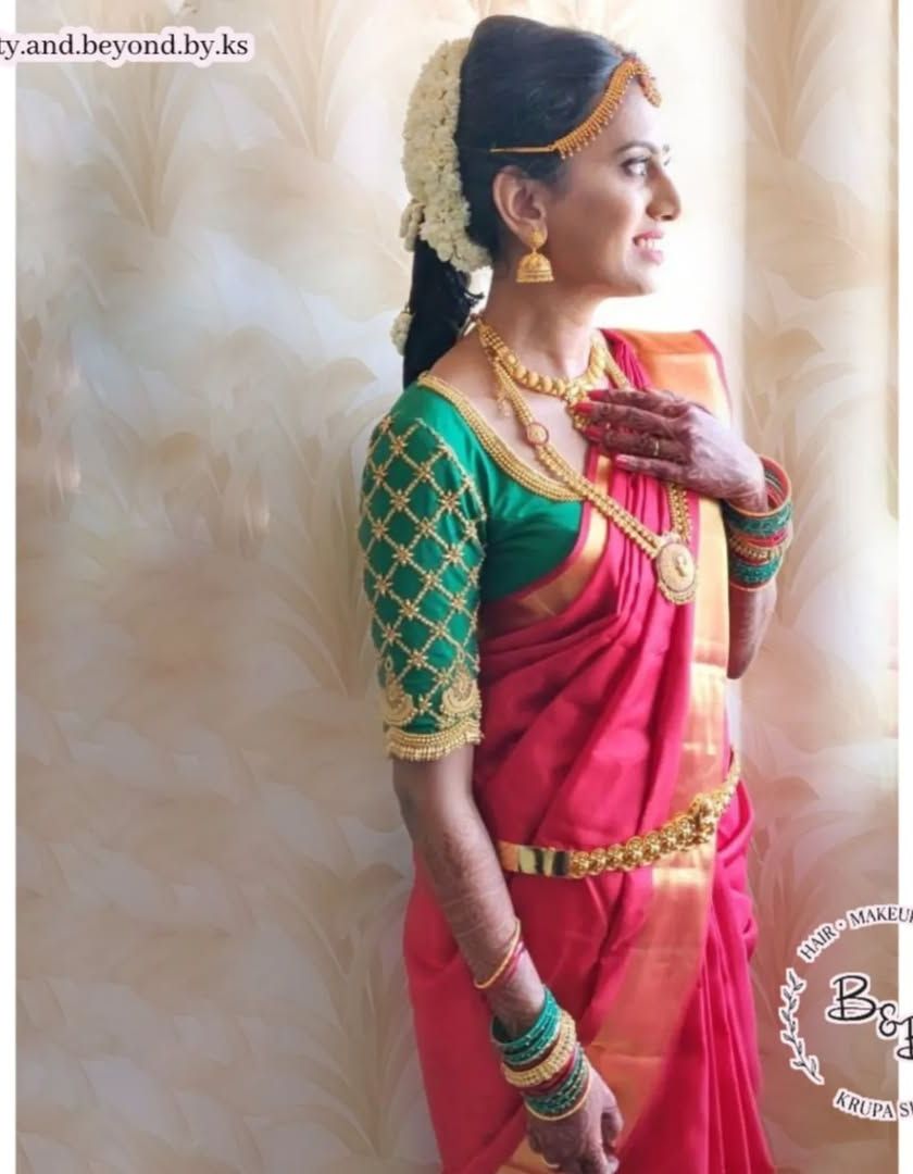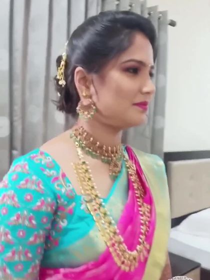I have a special love for creating authentic South Indian bridal hairstyles. My expertise includes crafting the traditional bridal braid, known as Jadai or Poola Jada, and adorning it with fresh flowers, venis, and traditional jewelry. I also provide expert Kanjeevaram saree draping to ensure your entire Muhurtham look is flawless.