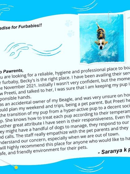 Hi, I’m Preeti and Becky's Bow Wow House is all because of my munni, Becky. She was my beagle, my world. Losing her broke me, but her love made me see how many dogs need a place to feel safe and happy. So I built this spot - not just for daycare, but for dogs to play, swim, chill, and make new friends. We also feed community dogs every day, all because Becky taught me what real love for dogs means.