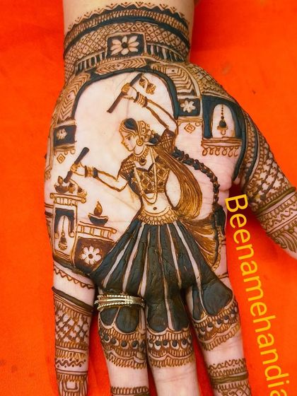 I create custom mehandi designs for festivals and occasions, including portraits and themed patterns to match your celebration.