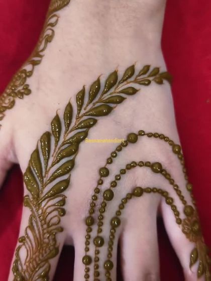 If you want something modern and bold, Arabic mehandi is a great choice. I create designs with beautiful flowers, leaves, and vines that flow elegantly across the hands and fingers, often with lots of open space to make the pattern stand out. I also love mixing styles to create unique fusion designs.