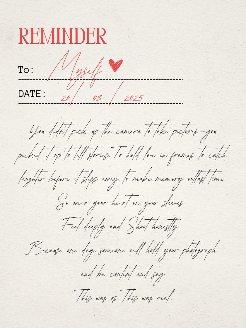 I don’t just take pictures; I chase real moments and tell stories. My approach is built on curiosity, honesty, and a passion for capturing the emotions that make you unique. Here's a little insight into my world and the heart behind my lens.