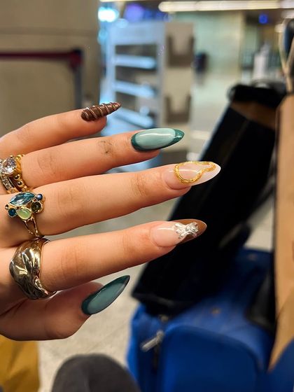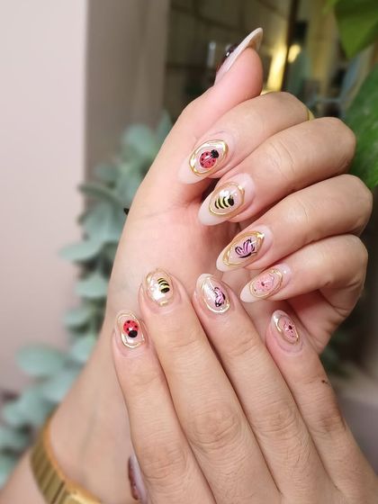 We create personalized nail art designs using advanced techniques and premium products. Our specialties include 3D nail art with intricate elements like butterflies and flowers, cat-eye effects, marble patterns, and seasonal themed designs.