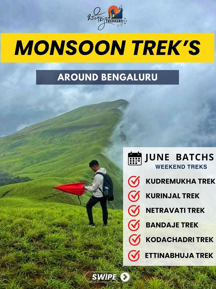 Our most popular monsoon trek, Netravati is famous for its stunning "cloud factory" views where mist rolls over the vibrant green hills. This moderate 14 km trek in the Kudremukh National Park offers an unforgettable experience of walking through the clouds.