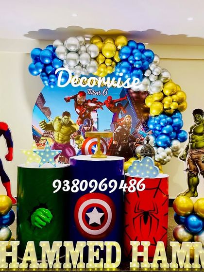 We handle complete birthday party decoration with custom themes, props, backdrop, balloons, and special effects, so you get a setup that matches your idea and don’t have to do anything yourself.
