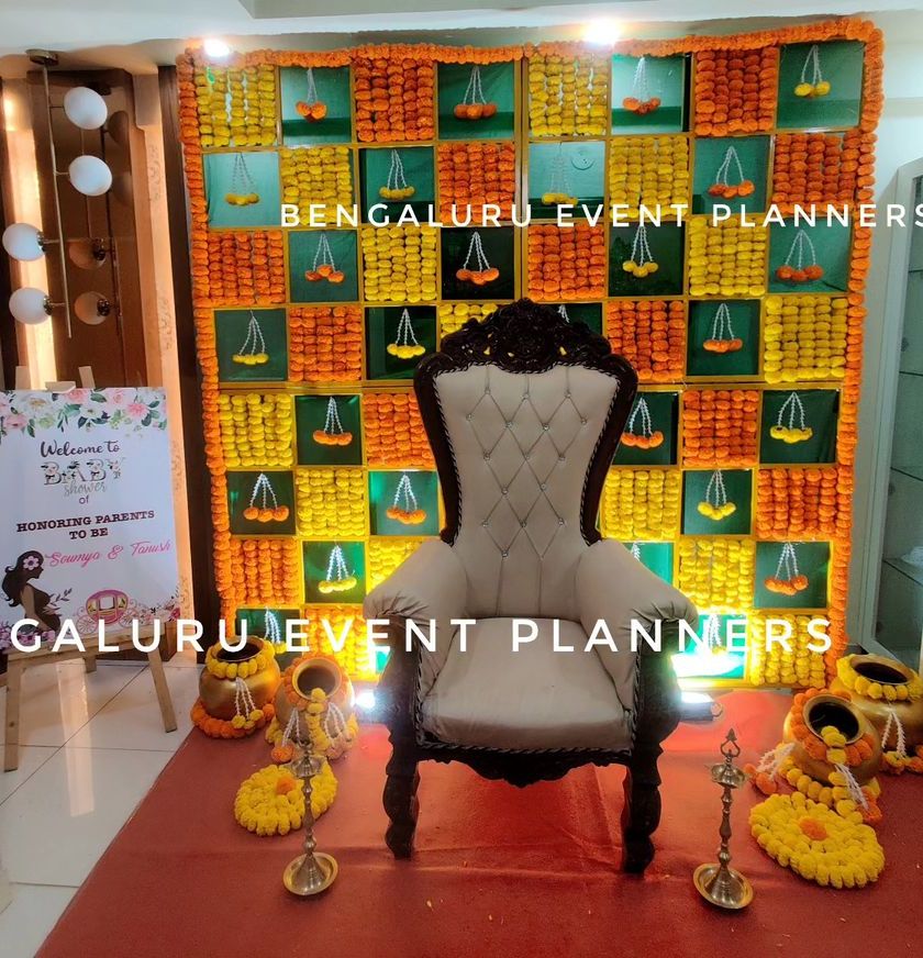 I specialize in creating beautiful, traditional decor for baby showers, naming ceremonies, and other family celebrations. My designs often feature classic elements like marigold (genda phool) backdrops, intricate floral patterns, and customary props to honor your family's heritage.