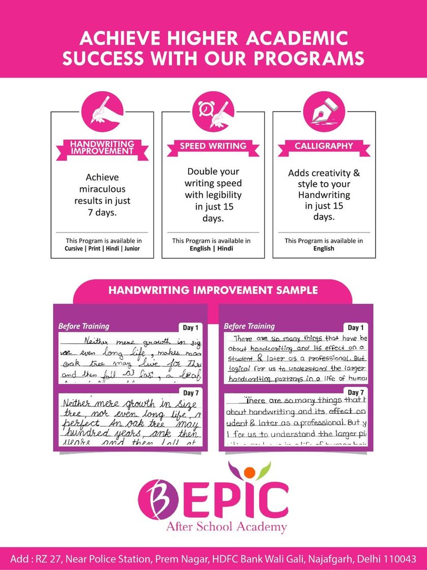 We transform handwriting from a chore into an art form. Our specialized workshops focus on calligraphy and speed writing techniques to improve neatness, legibility, and confidence in just a few weeks, as shown in our before and after samples.