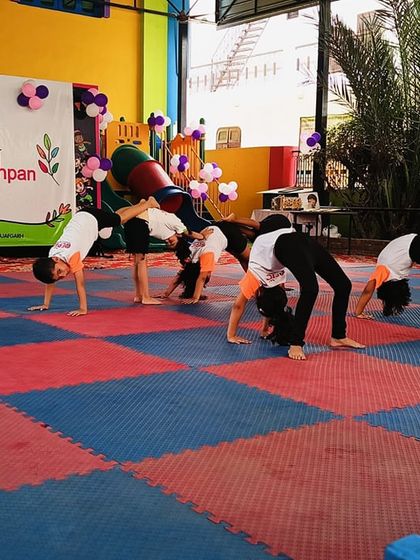These programs build a strong foundation in physical and mental wellness. Our gymnastics classes focus on developing strength, flexibility, and coordination, while our playful yoga sessions teach children focus, calm, and healthy posture.
