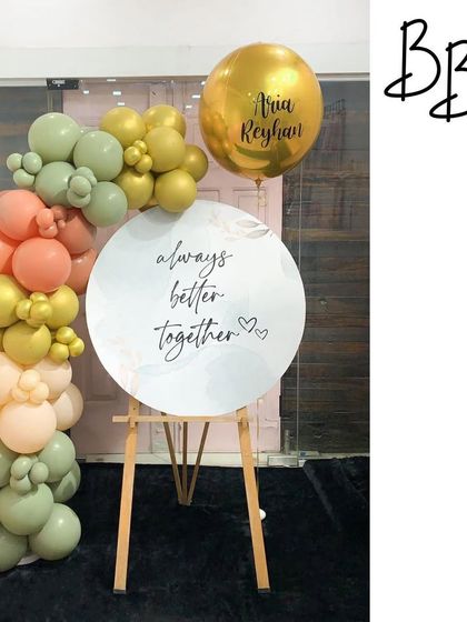 Make a great first impression with a personalized welcome sign. These easel displays combine a custom-printed board with an organic balloon garland, perfect for party entrances, baby showers, or any special event.