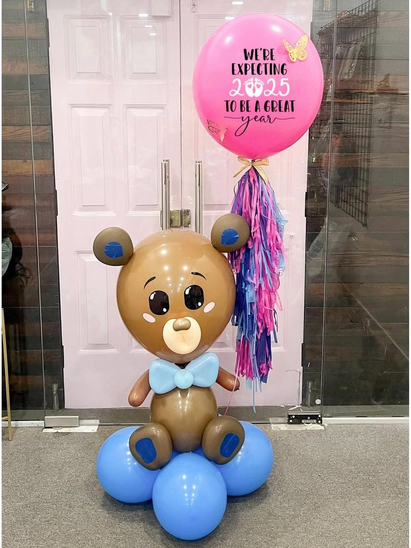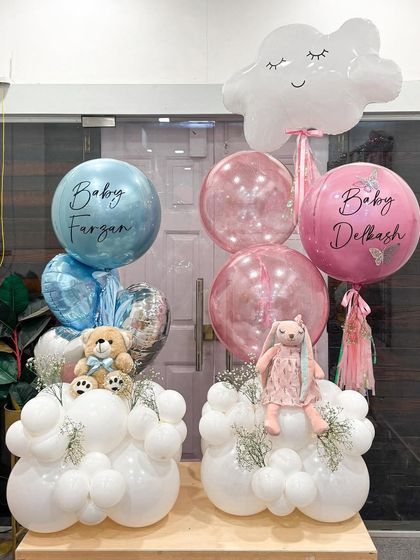 Celebrate new arrivals with my adorable baby announcement and welcome-home arrangements. I combine soft-colored balloons with cute elements like teddy bears, toys, and personalized messages for a heartwarming display.