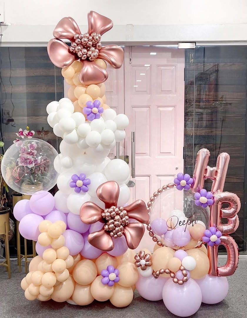 Our passion is in the details that make your decor unique. This includes intricate hand-twisted balloon sculptures like bows and flowers, bold elements like golden chains, and one-of-a-kind hand-painted balloons that add a personal, artistic touch to your event.