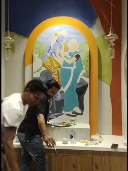 I make your walls pop with 3D and textured art. This includes creating raised relief sculptures, like the Krishna-themed piece, or using materials like putty and gold leaf to add depth and a unique tactile finish.