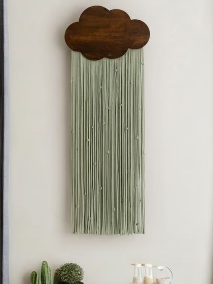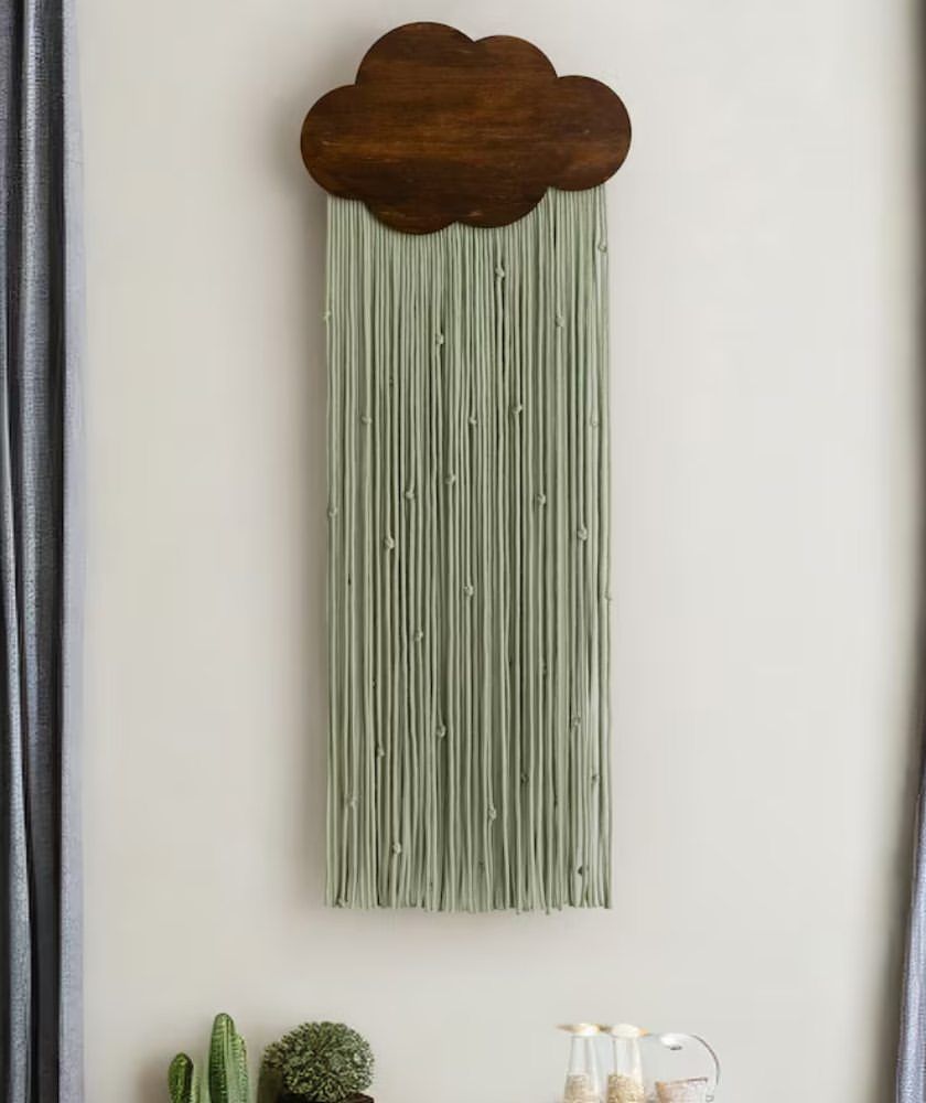 Add a touch of playfulness and serenity to your space with our unique cloud-shaped tapestries. These pieces combine a beautifully finished wooden cloud base with a cascade of soft cotton threads, evoking the feeling of gentle rain. Ideal for nurseries, children's rooms, or any corner that needs a soft and dreamy accent, each tapestry is handcrafted in India and can be customized by color.