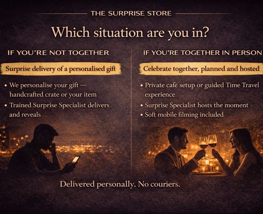 These are the people who make the magic happen. My Surprise Specialists are professional hosts, storytellers, and hype-persons who personally deliver every experience. They are the heart of my service and the reason it’s so different from a simple courier drop.