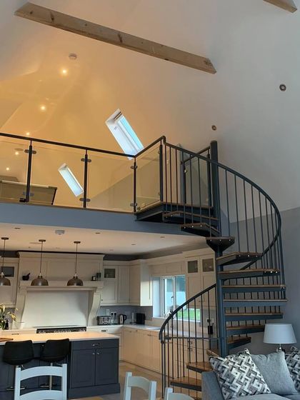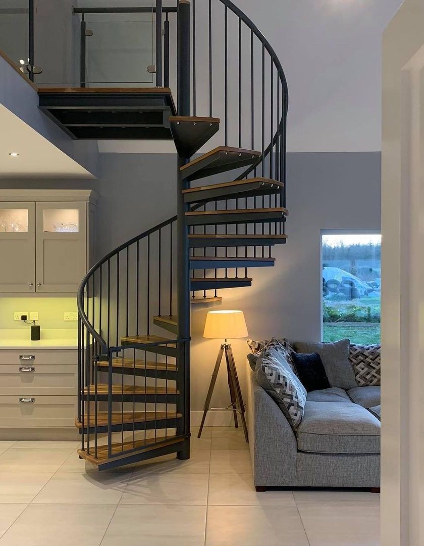 Ideal for making a statement in both compact and open-plan areas. Each one is built around a solid steel central pole, with custom treads and railings fabricated to fit the space perfectly.