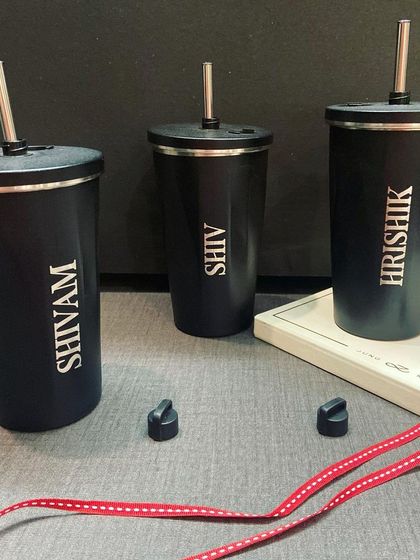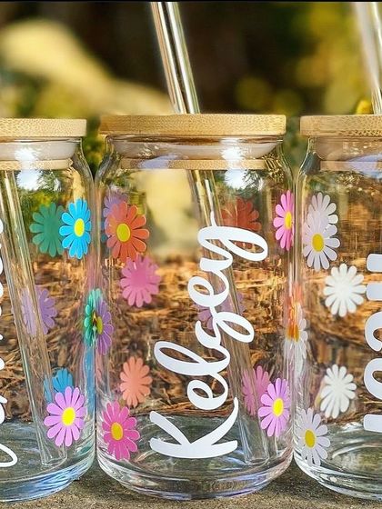 We specialize in customizing a range of drinkware including glass tumblers, wine glasses, insulated bottles, and water bottles. Each piece can be personalized with names, logos, or themed designs.