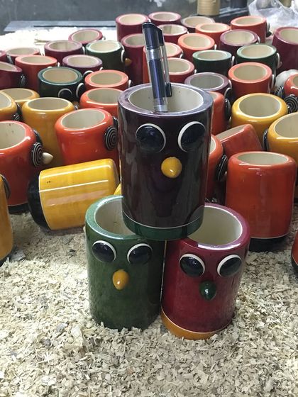 We make handmade Channapatna wooden toys and gifts using safe, eco-friendly materials, certified for quality, and every purchase directly supports our local artisans.