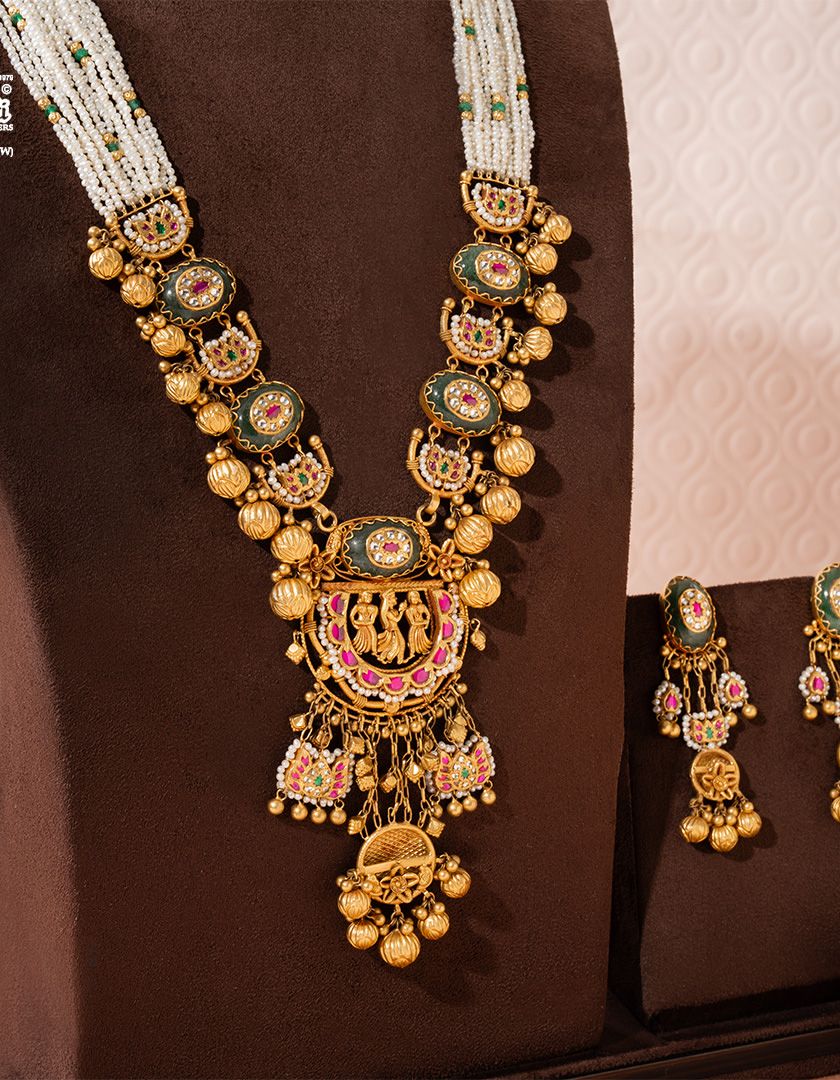 For the most significant moments, we present our collection of ceremonial masterpieces. These pieces, from majestic Rajwadi haars to elaborate Kundan sets, are handcrafted in 22ct gold to not only adorn a bride but to begin a new legacy. We offer exclusive consultations to design a complete bridal suite that feels uniquely yours.