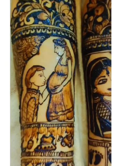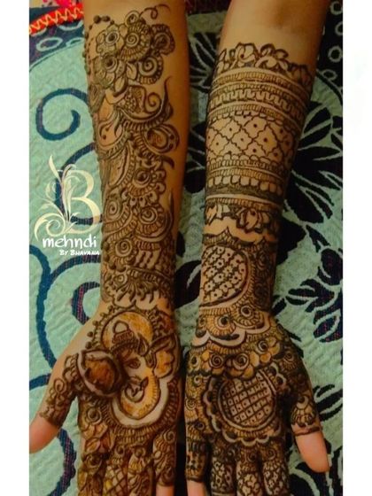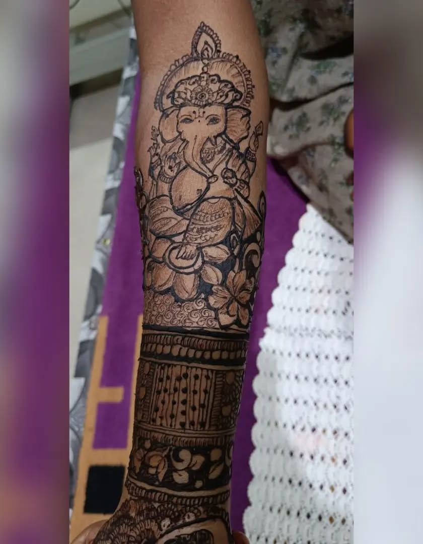 Celebrate your growing family with a design that tells your unique story. I love creating special henna for baby showers, incorporating portraits of the parents-to-be, grandparents, and even cute baby figures like little Krishna.