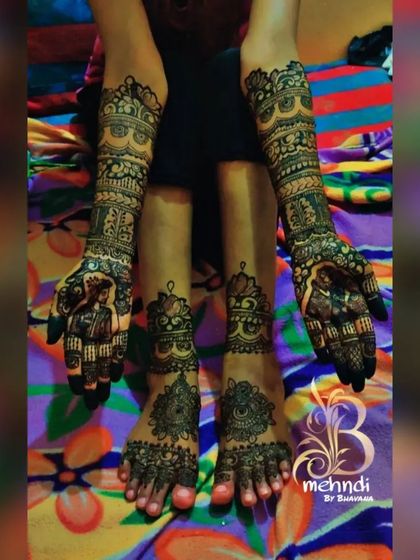 Complete your bridal look with a coordinated henna design for both your hands and feet. I blend traditional motifs like peacocks and elephants with your personal story for a beautiful, cohesive result.