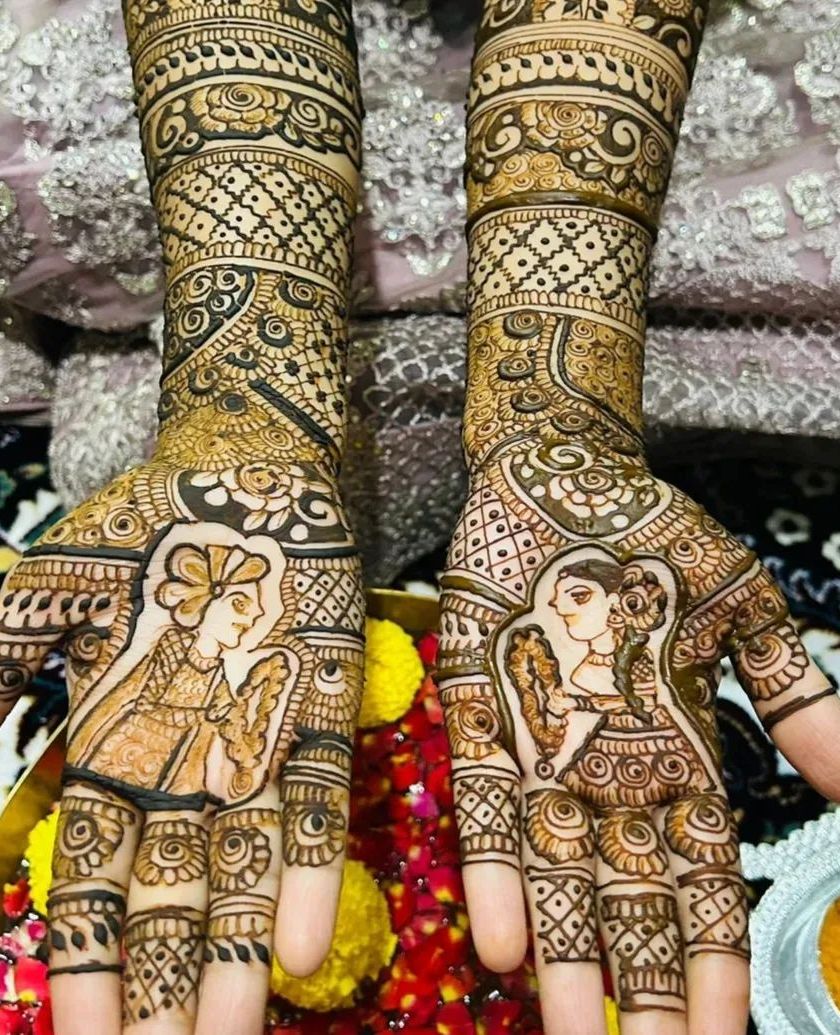 Your love story, told through intricate henna. I specialize in creating custom portraits for your special day, capturing everything from detailed traditional figures to modern, cute cartoon versions of you and your partner.