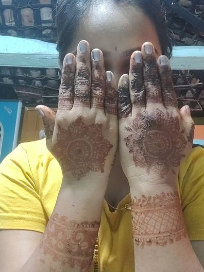 Hi, namaskara! I’m Bhavana. Henna is more than work for me - it’s my way to spread art and happiness. The smell, the colour, the patterns, everything just feels alive. I love seeing that deep dark henna stain on my clients’ hands, knowing I made someone’s day special. Whether it’s a wedding or festival, sharing this joy, even teaching mehndi art, is what I live for. Family saying ‘im satisfied hearty’ – that’s my real reward.