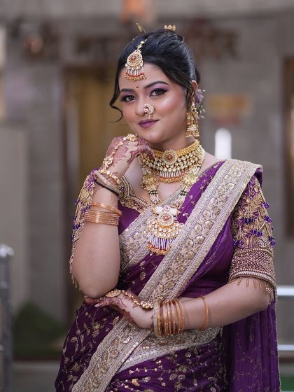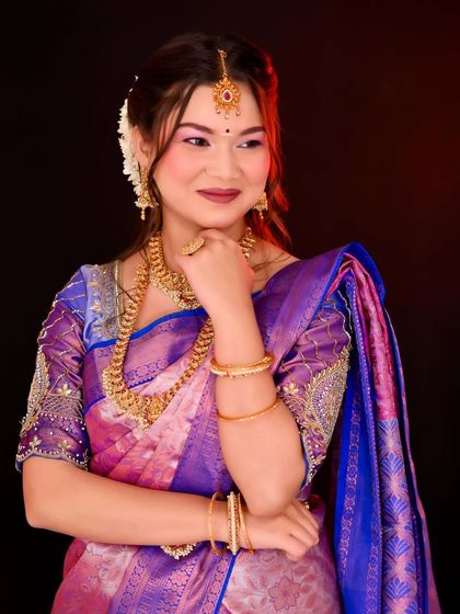 We do waterproof bridal and special occasion makeup that lasts all day, suits all skin tones, includes hairstyling and saree draping, and keeps your real skin texture visible.