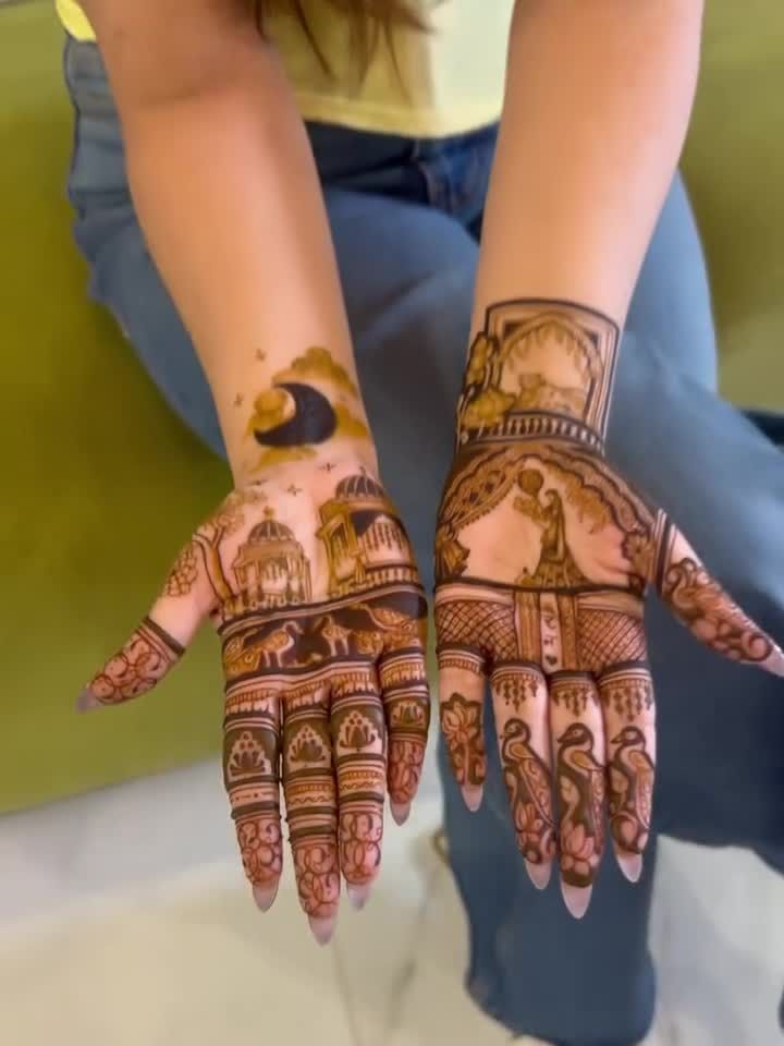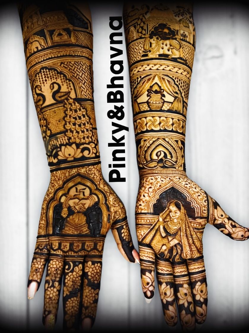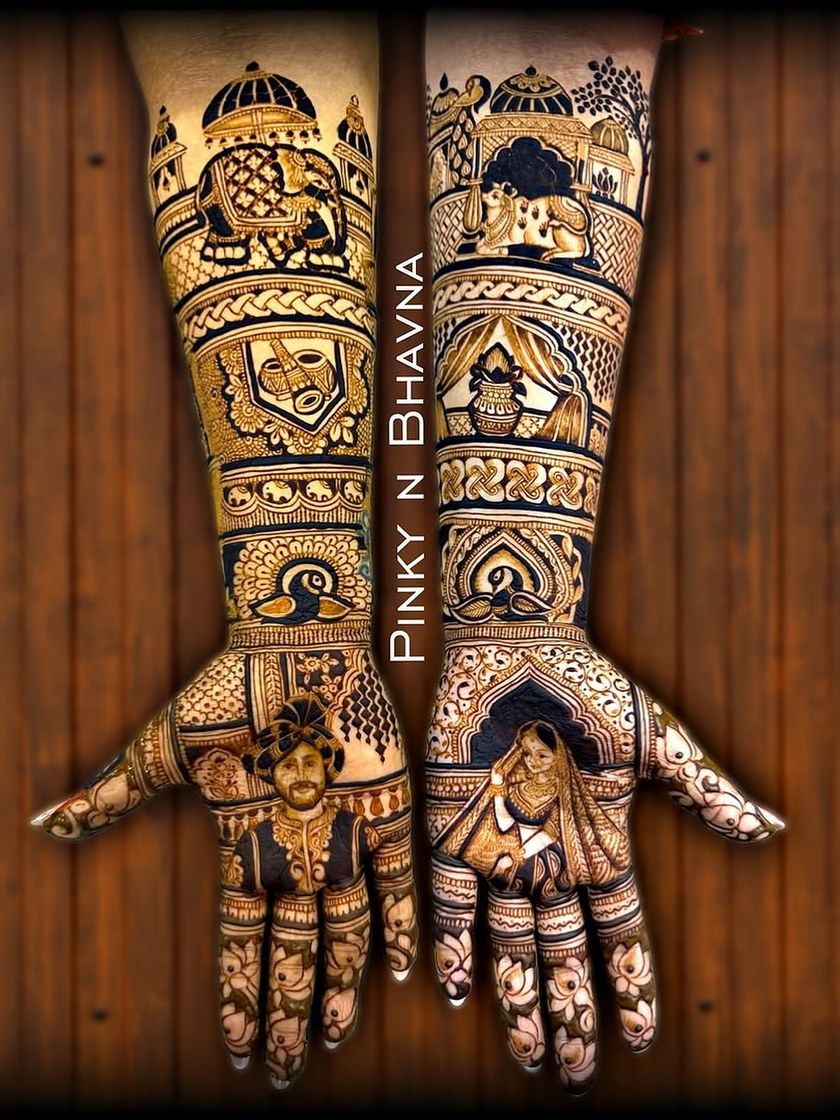 This is my specialty, where I create dense, detailed, and breathtaking designs for a bride's big day. For these extensive projects, my partner Pinky and I work as a team to ensure every element, from traditional peacocks and elephants to intricate jaali and floral patterns, is executed perfectly.