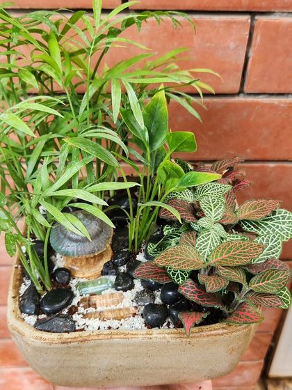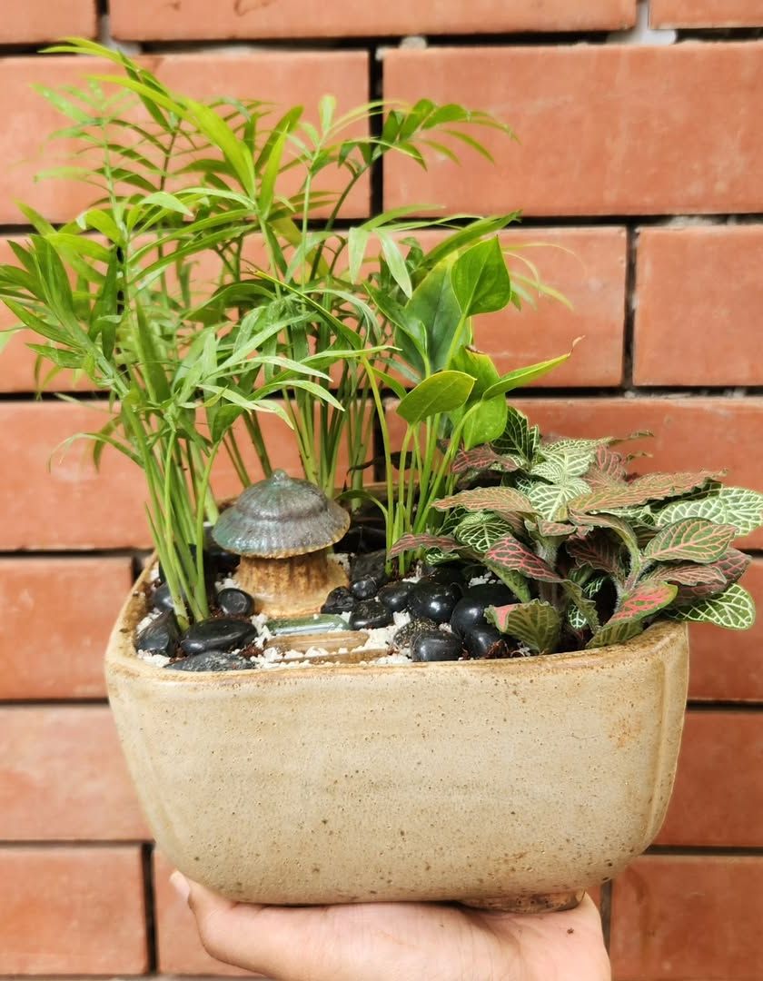 These are tiny worlds in a dish, perfect for desks, shelves, or as a unique gift. I create both lush, green terrariums with miniature palms and Fittonias, as well as desert-themed succulent and cactus gardens, often adding details like colored sand or tiny decorative huts.